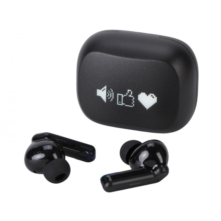 Беспроводные наушники с шумоподавлением c подсветкой лого Lites, черные (гравировка)