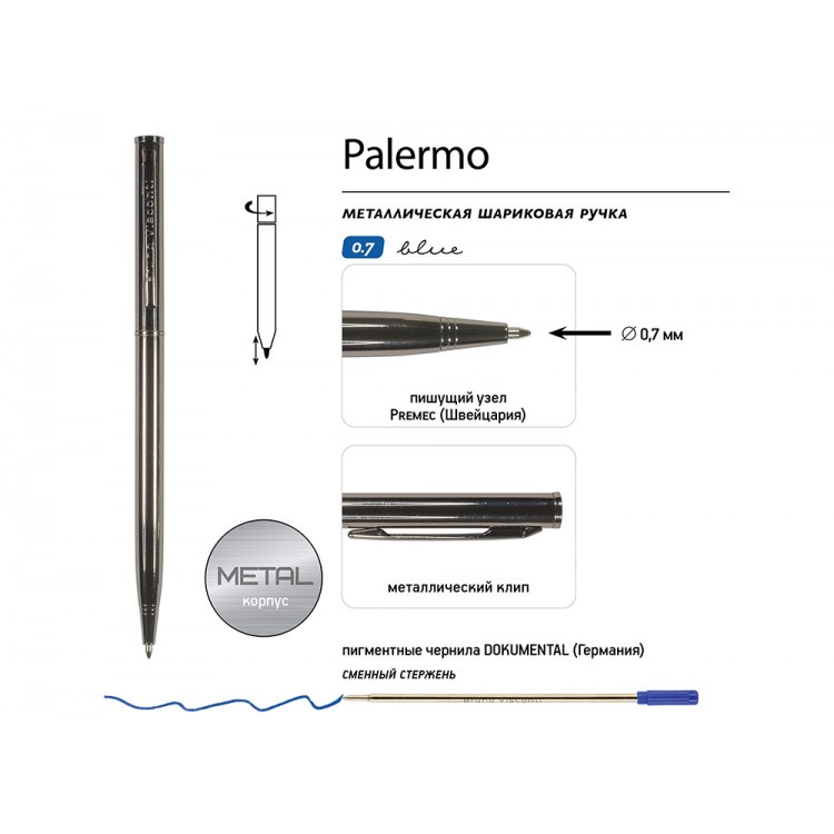 Ручка шариковая автоматическая BrunoVisconti® PALERMO цвет корпуса вороненая сталь, 0.7 мм