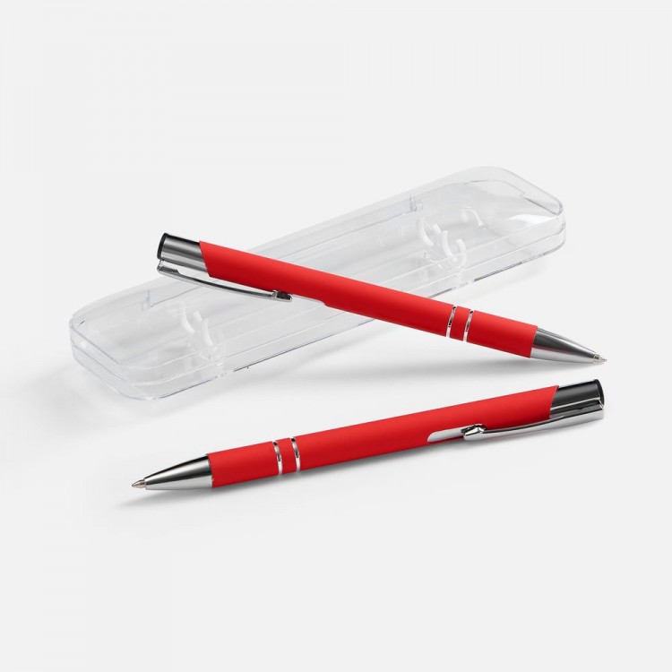 Набор из двух ручек Keskus с покрытием софт-тач в прозрачном пластиковом футляре.
