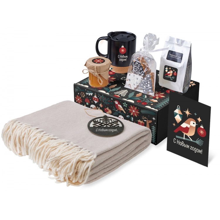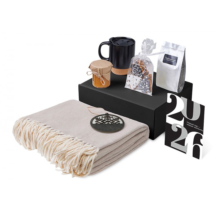 Подарочный набор c пледом, кружкой и вареньем, черный