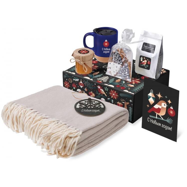 - Код товара: Подарочный набор c пледом, кружкой и вареньем, синий