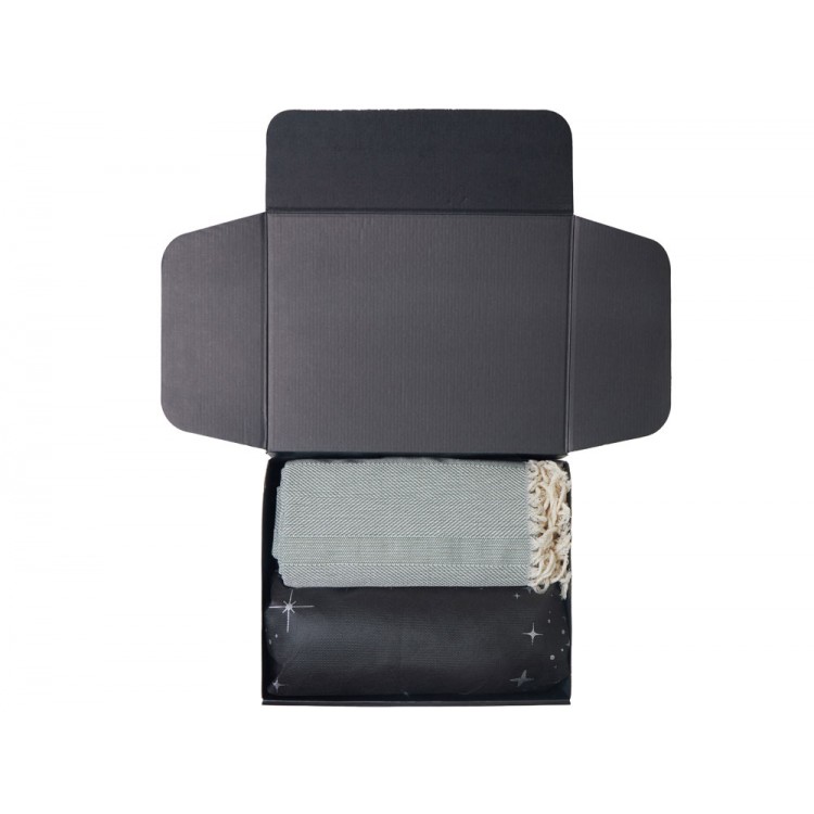 плед - 100% хлопок; подвеска - березвовая фанера; открытка - бумага; мешок - нетканый материал (спанбонд)