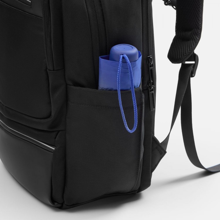 Для быстрого доступа к мелочам предусмотрены три передних кармана на молнии, а по бокам расположены два вместительных кармана, которые идеально подходят для бутылки с водой или зонта.