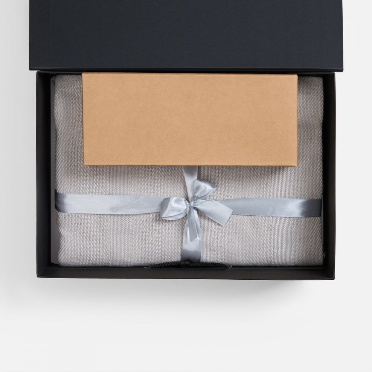 флакон - стекло, палочки из файбера; подставка для флакона - дерево; плед - хлопок 95%, полиэстер 5%, плотность 300 г/м²; коробка - переплетный картон, бумага Malmero