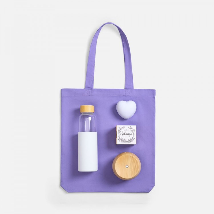 Красочный набор Lavendero — рецепт идеального дня. Пусть сумка насыщенного лавандового оттенка притягивает к себе только приятные покупки, а мягкий антистресс будет под рукой в нужный момент. Пусть воздух вокруг будет свеж, а на столе цветет лаванда — символ покоя и нежности.