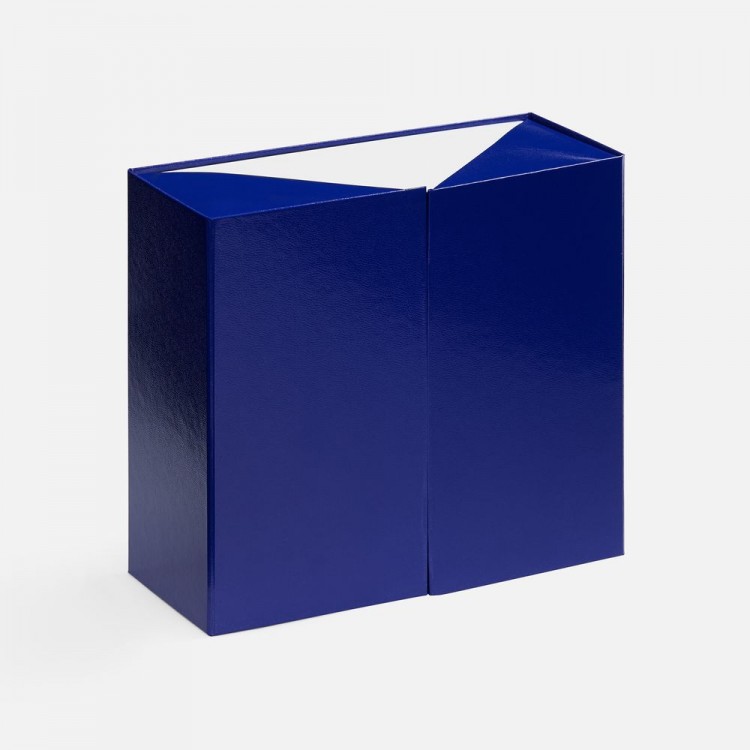 Коробка из переплетного картона 2 мм с оригинальной конструкцией: две симметричные створки открываются, создавая эффектную презентацию содержимого. Складная система на предустановленный двусторонний скотч делает сборку коробки быстрой и интуитивно понятной.