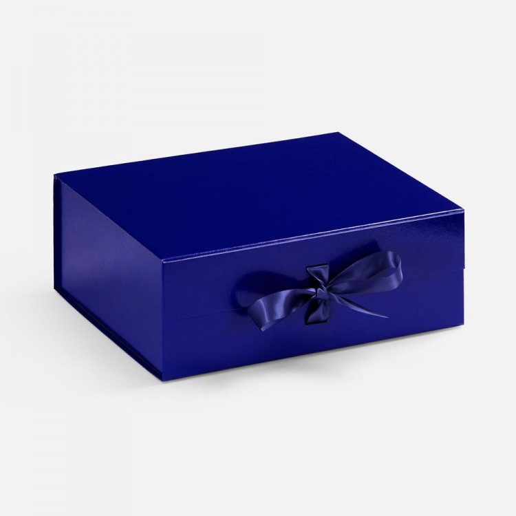 Коробка из переплетного картона с лайнером, ламинированым полуглянцевой текстурной пленкой устойчив к царапинам. Крышка на двух магнитах дополнительно фиксируется репсовой лентой.Толщина картона 2 мм.