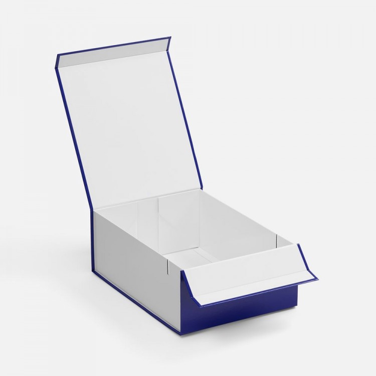 Плотная коробка из переплетного картона толщиной 2 мм с практичной конструкцией на двух створках. Складная система с уже нанесенным двусторонним скотчем позволяет быстро собрать коробку без дополнительных инструментов. Лайнер с полуглянцевым ламинированием устойчив к повреждениям и надолго сохраняет безупречный вид.