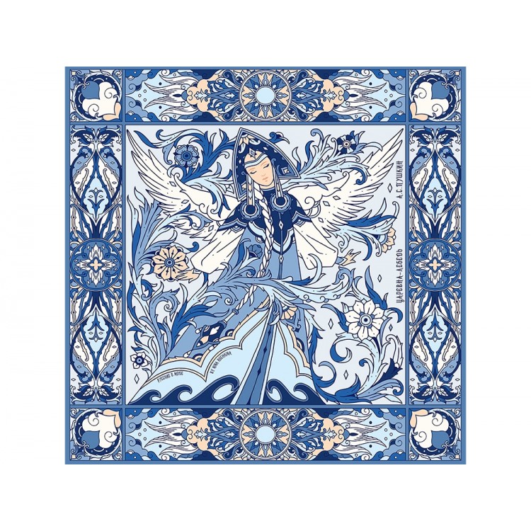 Дизайнерский платок Царевна Лебедь от Нины Ручкиной стал воплощением сказочного персонажа, прославленного великим и талантливым романтиком и поэтом — А. С. Пушкиным. Именно он впервые подарил нам образцы художественной русской эстетики, исходящей из самой глубины русской души.