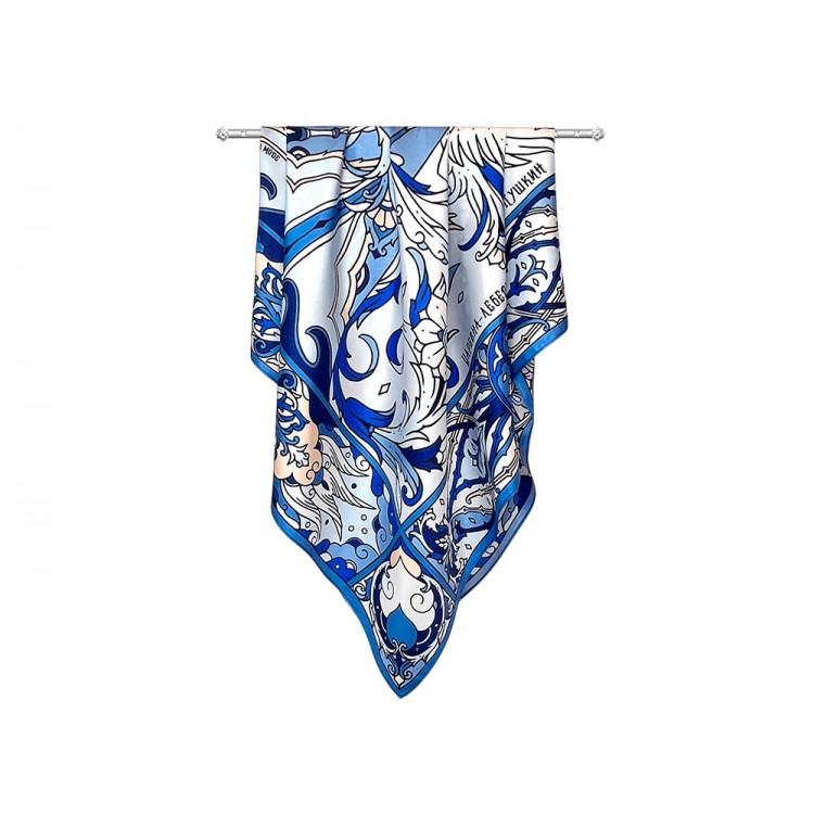 Платок Царевна-Лебедь 100% шелк, синий