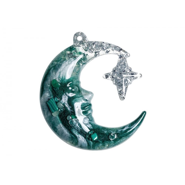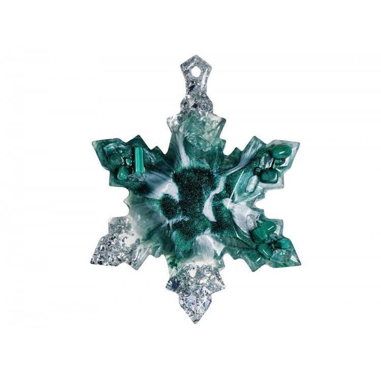 Набор из 2-х елочных игрушек: в форме месяца и снежинки. Игрушки выполнены из ювелирной эпоксидной смолы и украшены галтовкой из натуральных минералов.