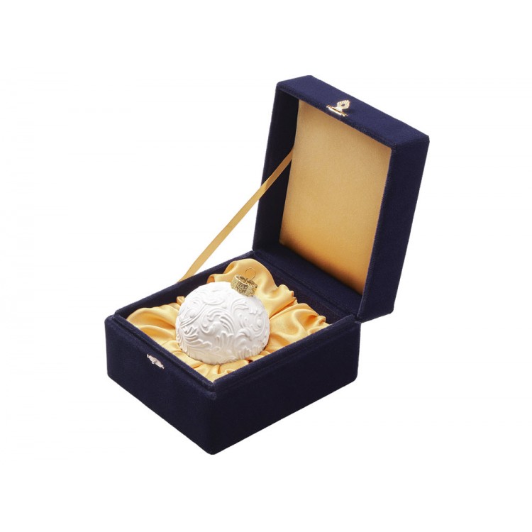 Игрушка упакована в изысканный подарочный футляр, обитый синим бархатом, что подчеркивает её ценность и делает готовым презентом для коллег и партнеров.