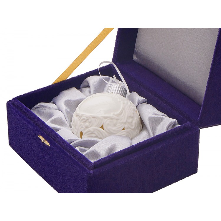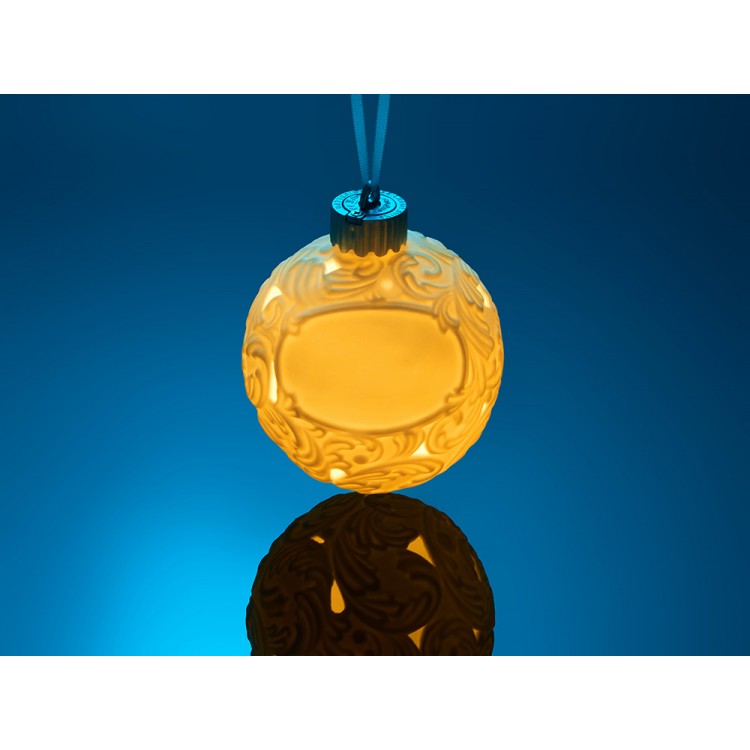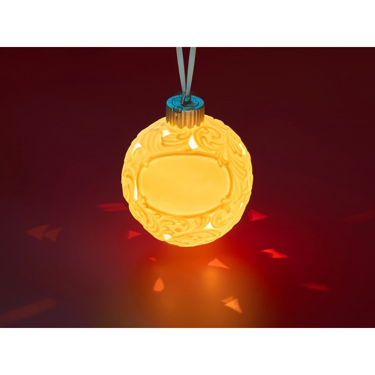 Фарфоровый шар с росписью в технике бисквит. Игрушка ручной работы. Матовая, бархатистая поверхность и пастельные тона создают утонченный образ старинного зимнего праздника. Это воплощение изящества и ностальгии. Шар светится изнутри мягким и ровным светом, наполняя пространство атмосферой спокойствия и волшебства.