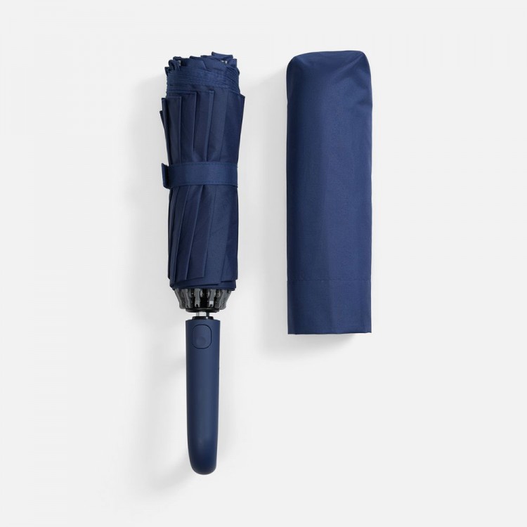 Преимущество обратного сложения заключается в том, что при закрытии внутренняя поверхность зонта остается снаружи, а мокрая сторона — запаковывается внутрь. За ручку-карабин удобно подвесить зонт на рюкзак или сумку.