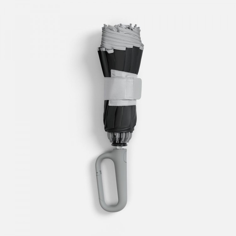 Складываясь после дождя, он прячет мокрую поверхность внутри, а сухая остается снаружи — в закрытом положении зонт не побеспокоит окружающих и не намочит одежду. За ручку-карабин зонт удобно подвесить, например, на рюкзак.